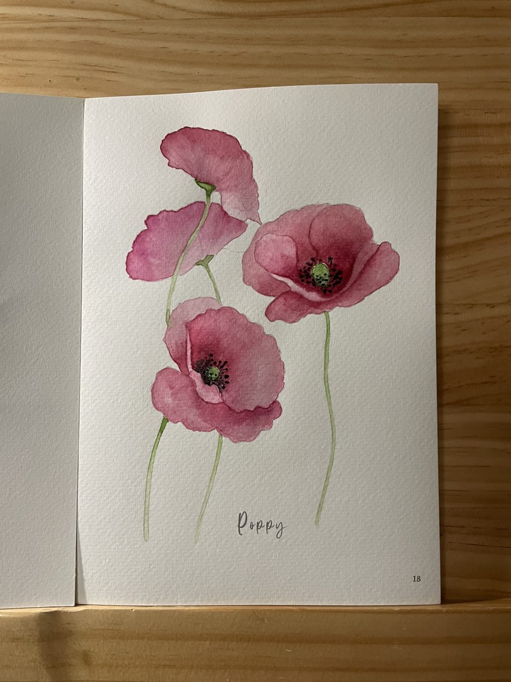 초벌칠을 한 후 한 겹 더 칠하는데 느낌이 잘 살지 않아 망했다 싶었다. 하지만 다 마르길 기다린 후 다시 한 겹 올리며 손을 봤더니 양귀비가 피어나는 거다!! 역시 수채화는 기다리면 기사회생하긴 하더라…