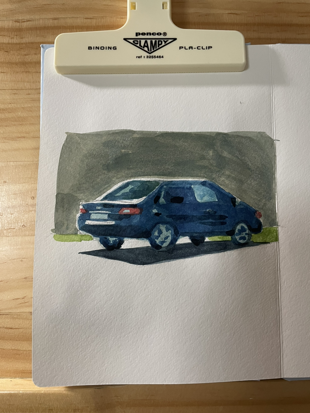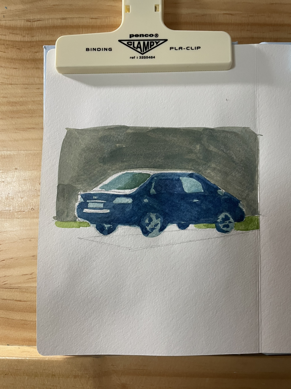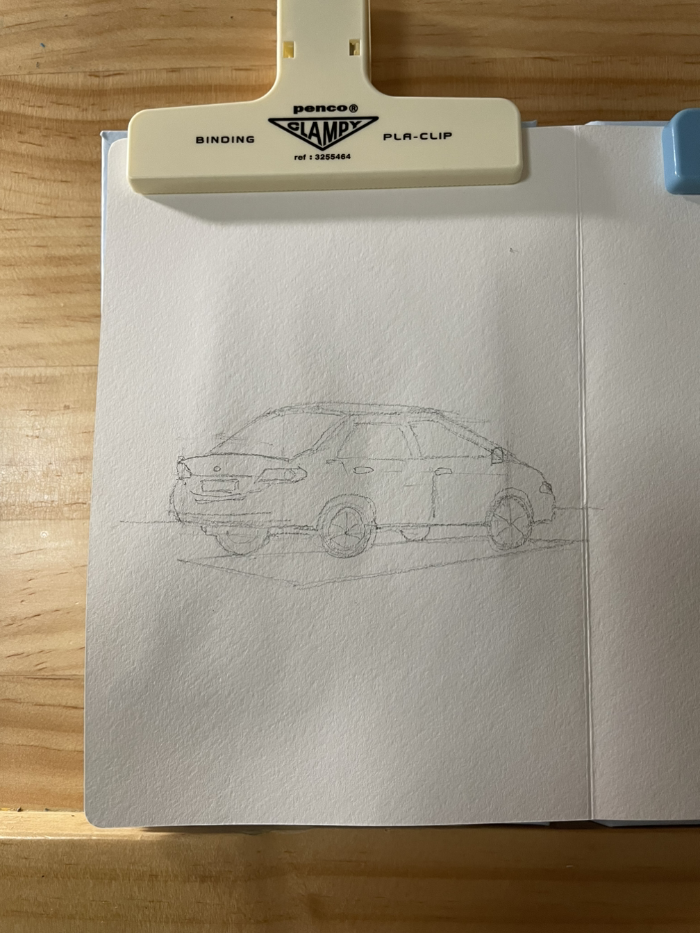 자료 사진 속 자동차를 투시법을 응용해 그렸다.