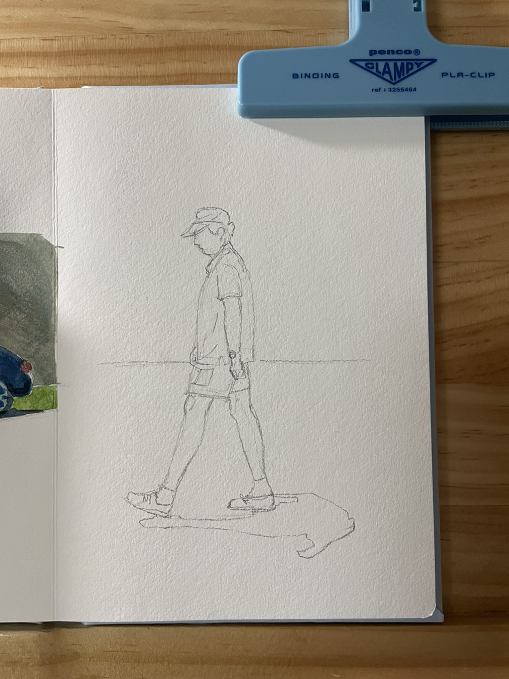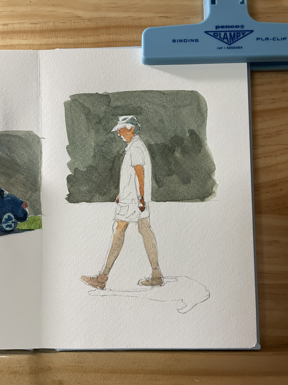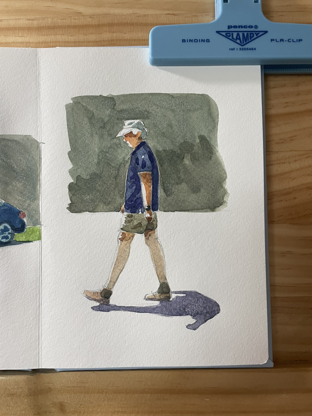 제공된 사진 속 걷고 있는 남자는 할아버지신데 허리가 꼿꼿해져 내 그림엔 청년이 되셨다. 채색이 위주니 아무렴 어떠랴~~