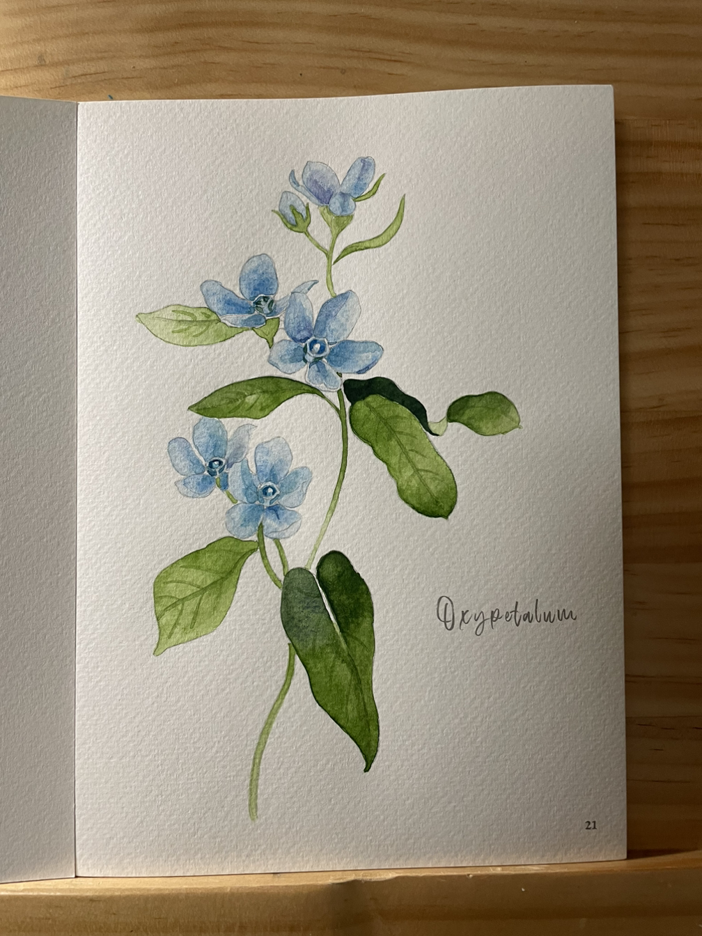 ‘날카로움‘이란 꽃말을 가진 ‘옥시페탈룸’은 ’ 블루스타‘란 이름으로 더 친숙한 꽃이다. 여전히 나뭇잎 색감이 마음에 들지 않게 나와 종이 탓을 했다…ㅋ