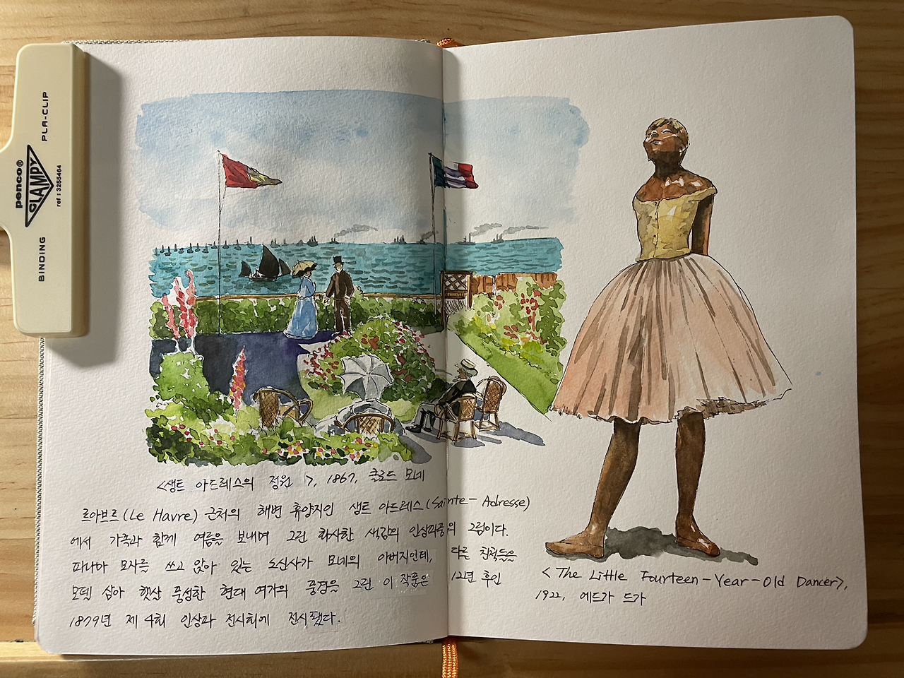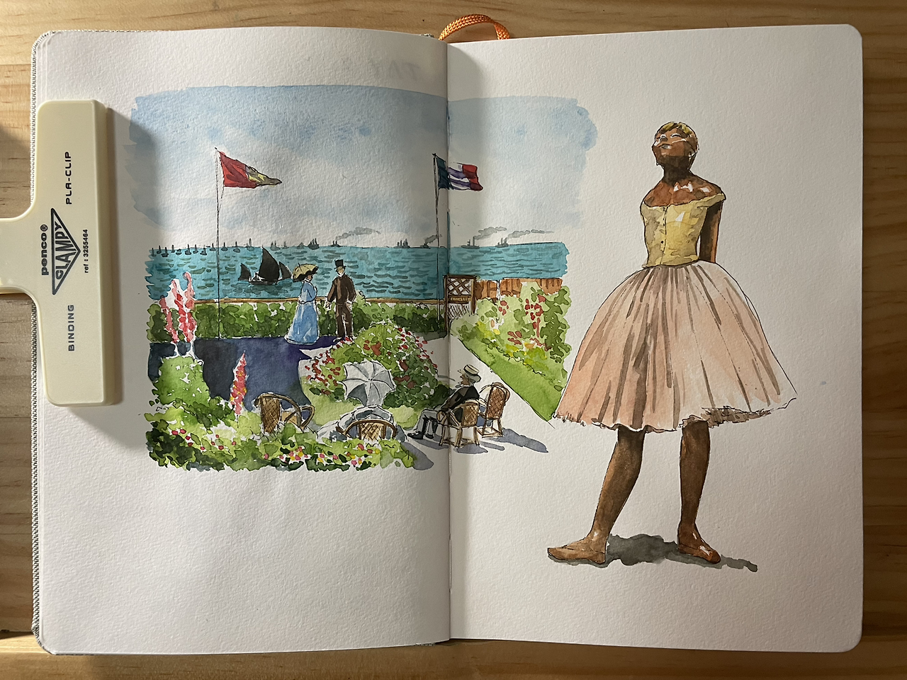 화사한 색감의 클로드 모네 그림을 그린 후, 에드가 드가의 청동 조각상을 그려 넣었다.