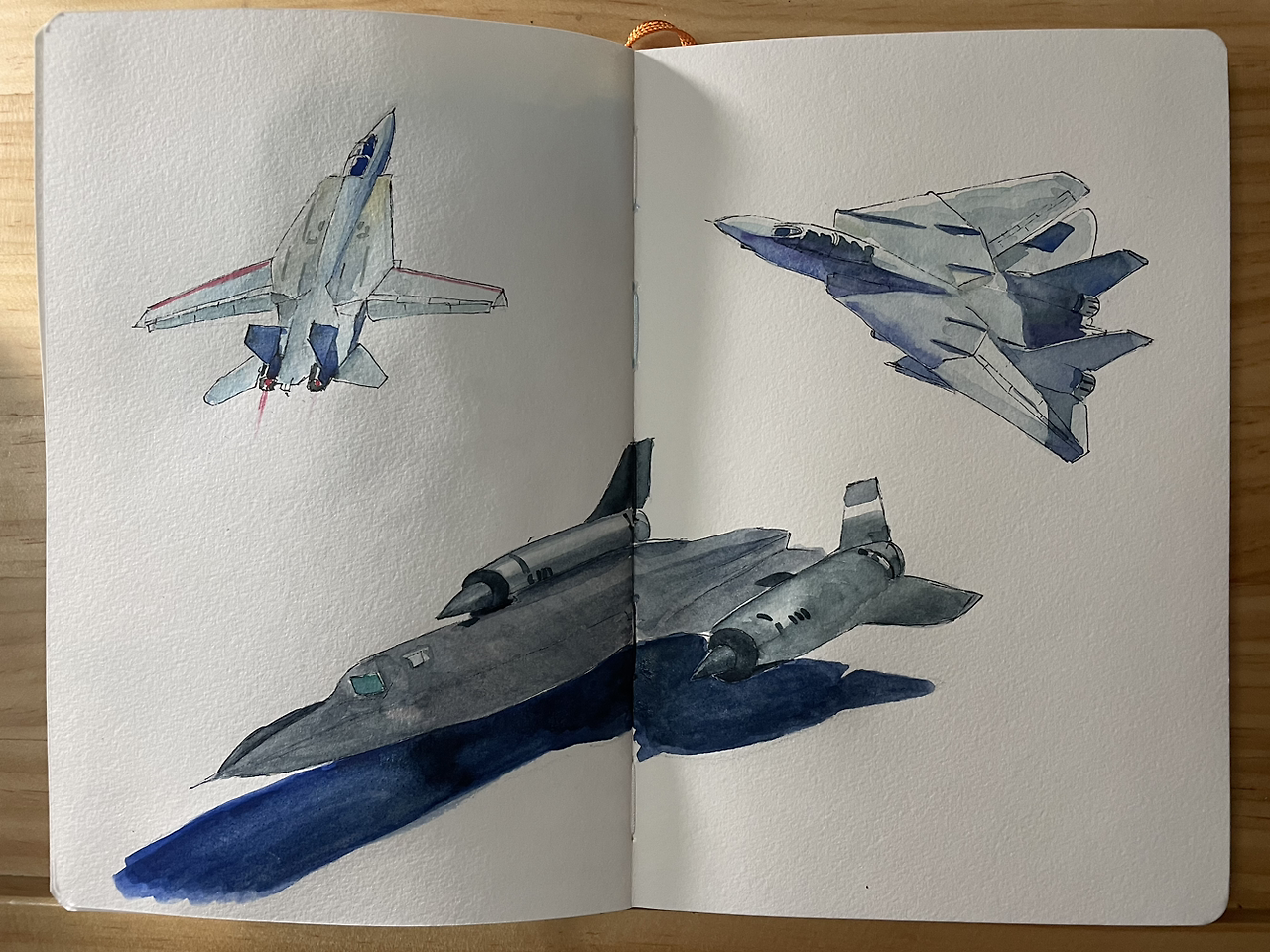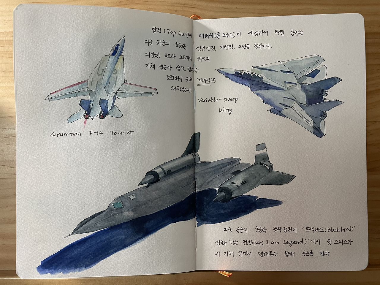 인트레피드 항공모함 위에서 톰캣 맞은편에 전시되어 있는 초음속 정찰기 ‘블랙버스’도 밑에 크게 그렸다.