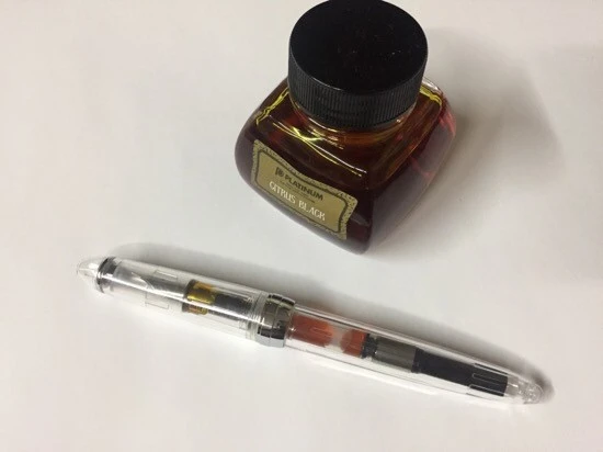 이 잉크는 마르면서 색이 진해진다. 내가 고른 ‘시트러스 블랙’은 쓸 땐 노란색이었다 점차 옅은 카키색이 된다.