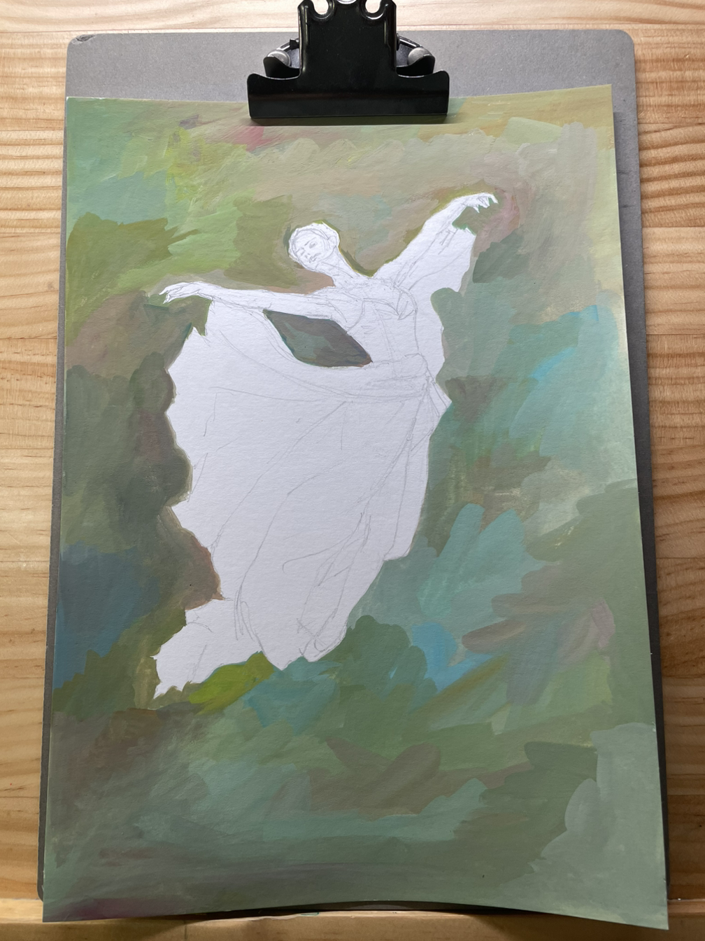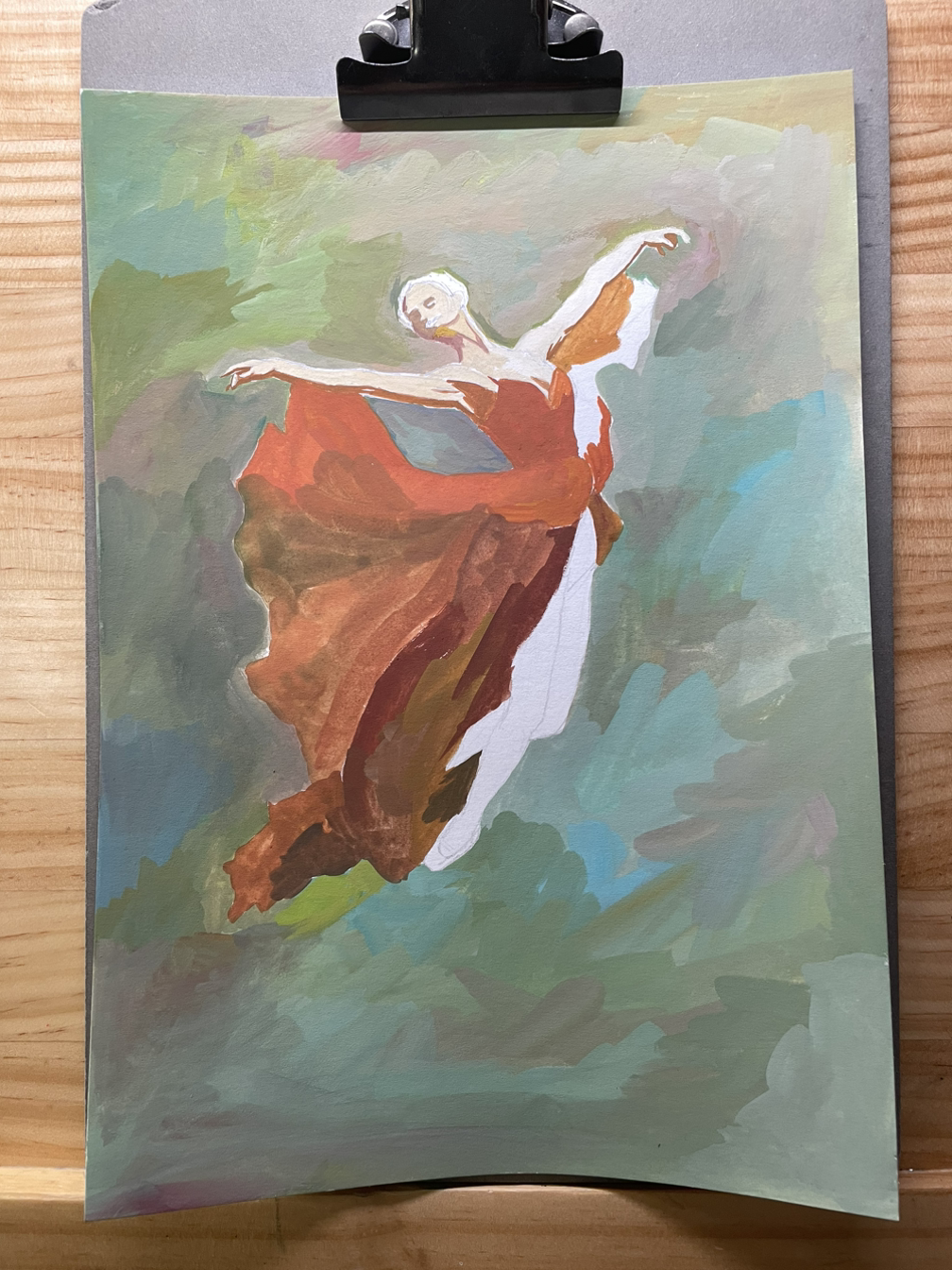 화실에서 못 그린 꽃밭의 배경색을 과슈로 연습해 보기로 했다. 이왕 그려볼 거 내가 자신 있거나 그려보고픈 그림을 그리자고 생각하니 역시 무용수다.