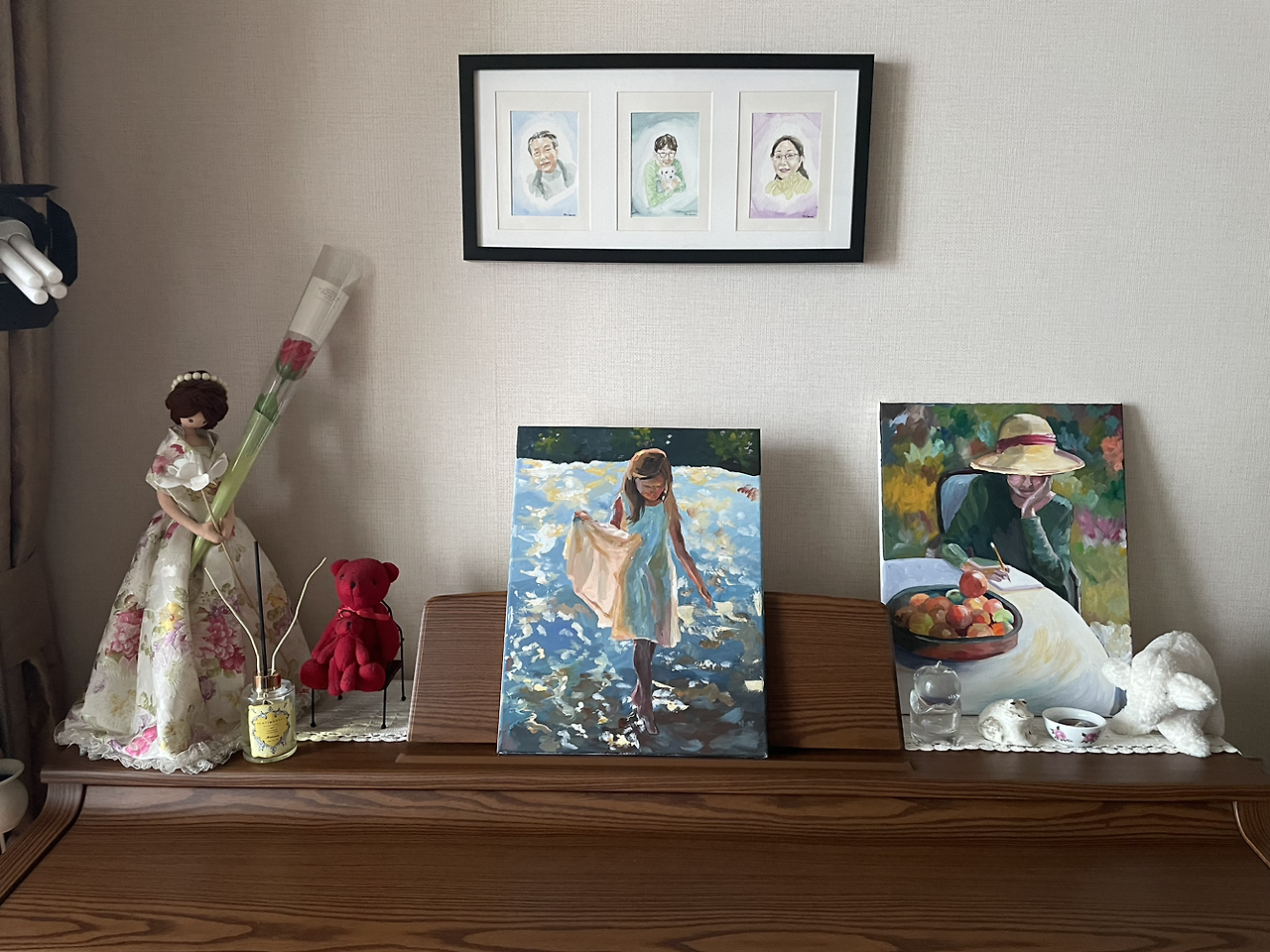 피아노 위에 놓여있던 조화와 자잘한 인형들을 버리고 그림들로 채우니 제법 분위기가 났다. 요즘엔 피아노까지 연습하고 있어서 하루가 금방 간다.