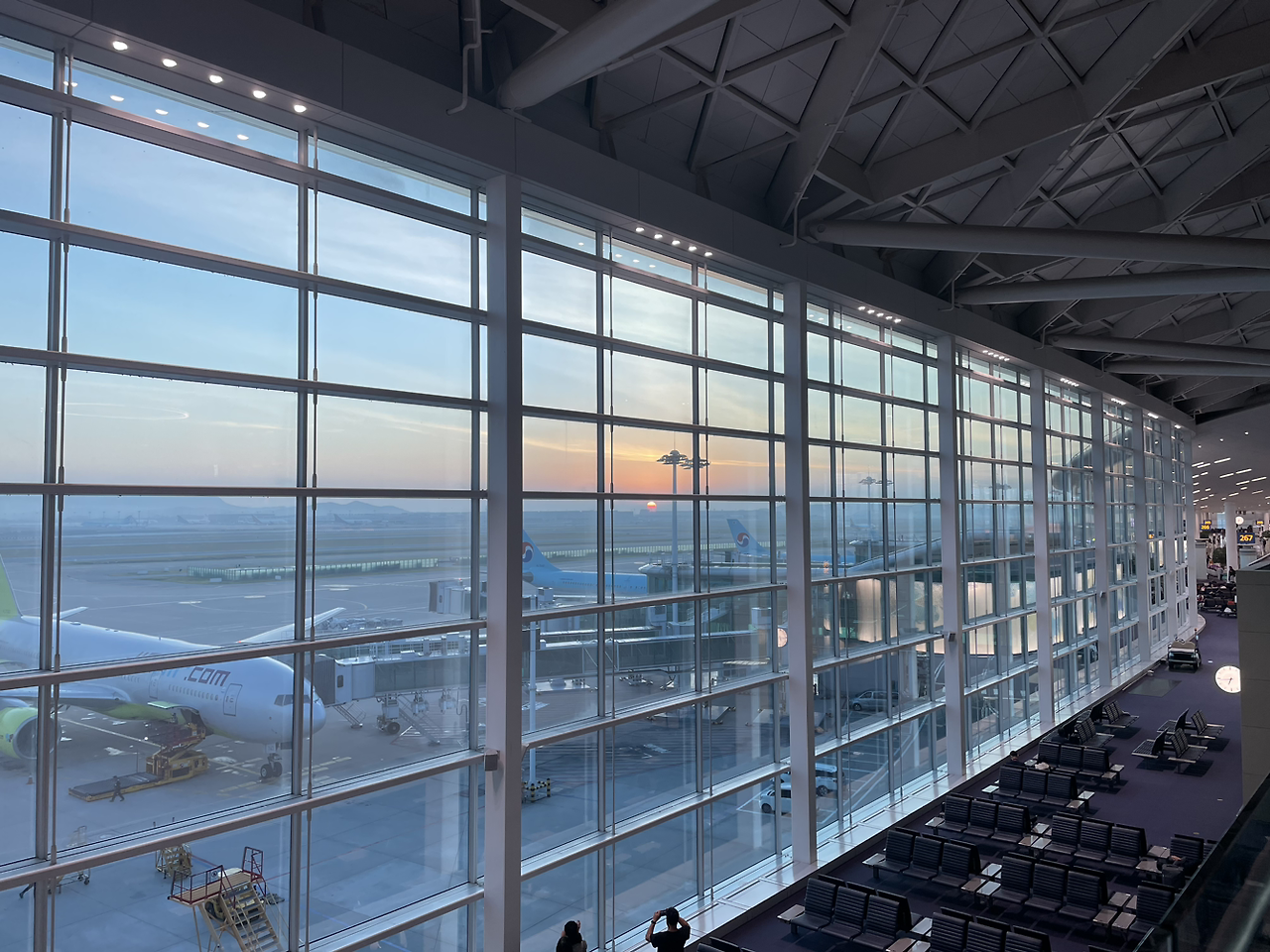 비행기들이 이륙 차례를 기다리며 나란히 줄을 선 모습을 기내 창으로 내다 보는 재미도 있었다. 게다가 우리가 탄 비행기 기장이 여성분이어서 왠지 뿌듯하기도 했다.