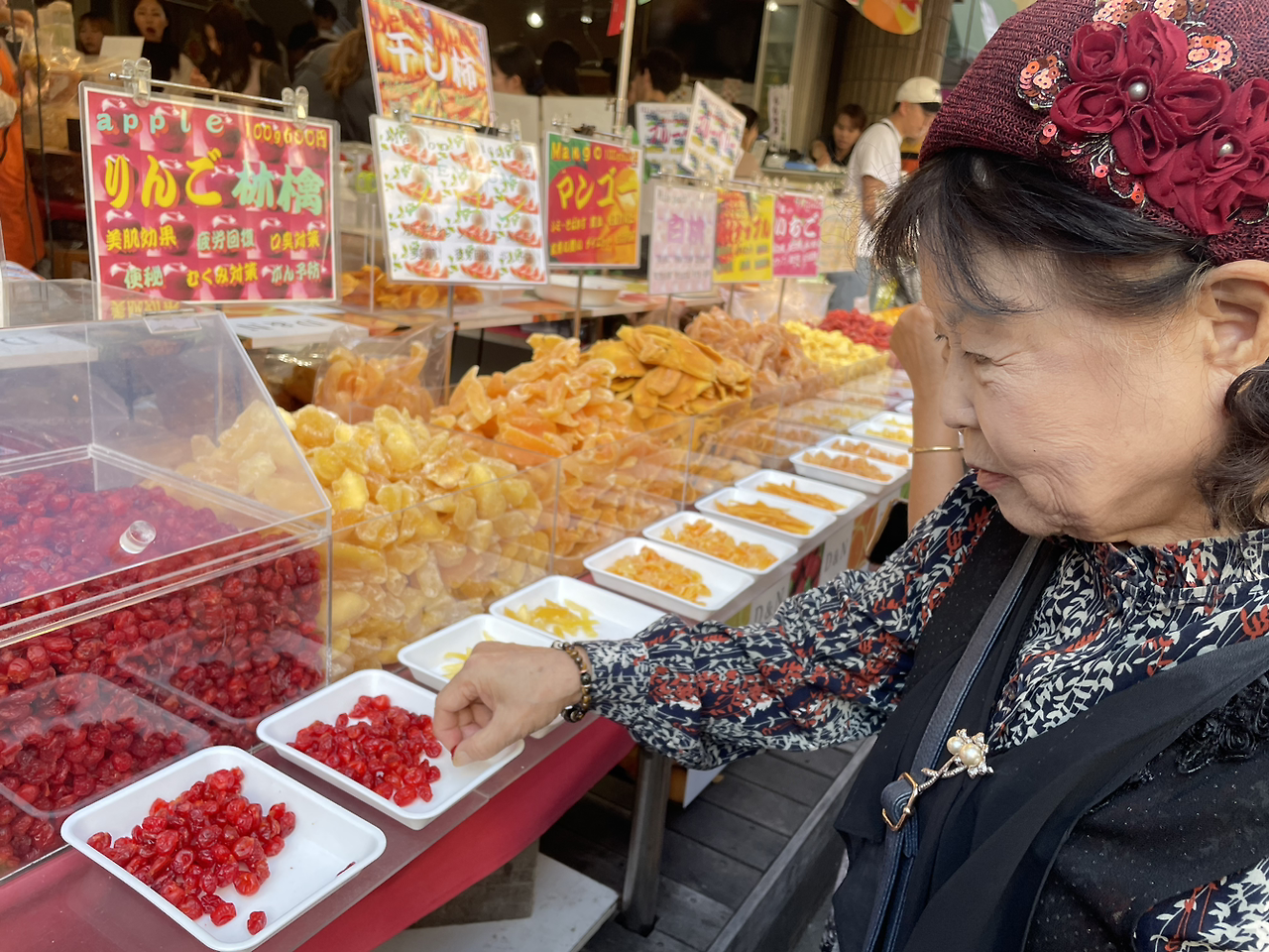 다양한 과일을 말린 건과일 시식대 앞에서 엄마에게 과일 이름을 가르쳐 드리며 하나씩 맛을 보는데 당이 충전됐는지 둘이 어린애처럼 즐거워했다.