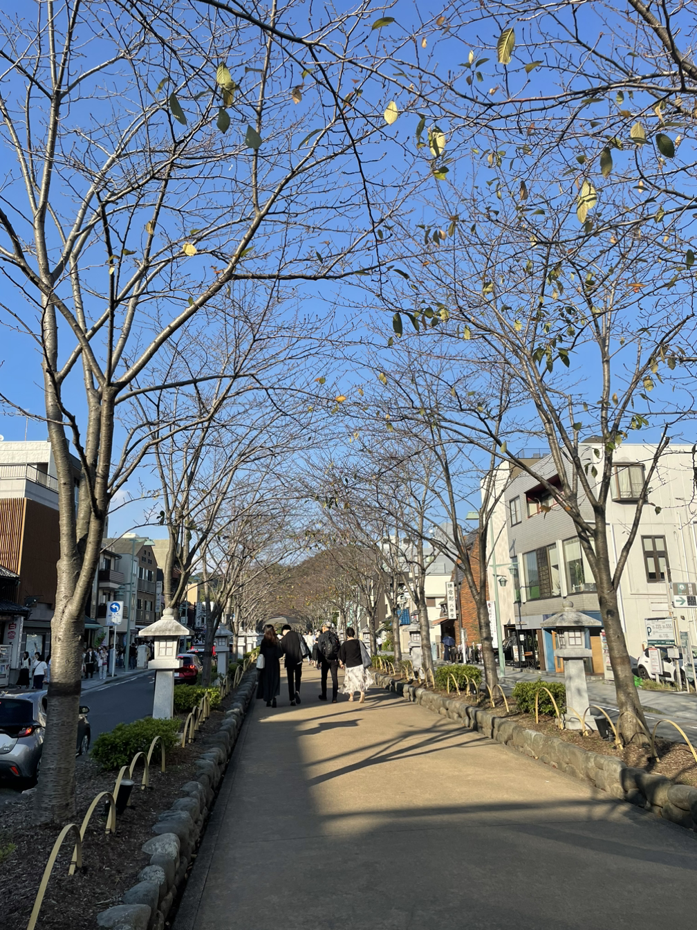가마쿠라 역 근처의 니노도리이(二の鳥居)까지 죽 이어진 참배길인 ‘단카즈라(段葛)‘를 따라 걸었다. 이 길은 차도보다 한층 높은 보도로, 봄에는 벚꽃이 활짝 핀 꽃길(하나미치 花道)을 이루어서 수많은 관광객들이 몰려오기도 한다.