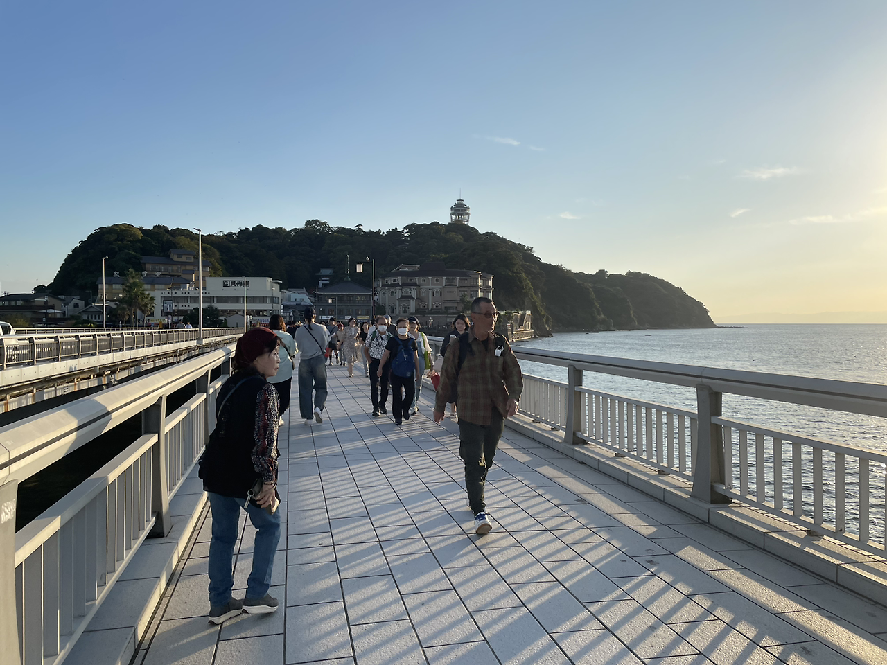 잠시 쉬려고 숙소로 가는 에노덴을 탔다. 하루에도 여러 번 탈 수 있는 일일 승차권을 샀으나 체력이 따라주지 못했다. 숙소 앞에 호스트 아저씨가 계셔서 무슨 일인가 싶었는데, 내가 여권을 포함한 신상 정보를 이메일로 보내야 하는 걸 까맣게 잊고 있었던 거다. 죄송한 마음으로 일처리를 한 후 조금 쉬고선 해가 지기 전에 서둘러 에노시마에 갔다.