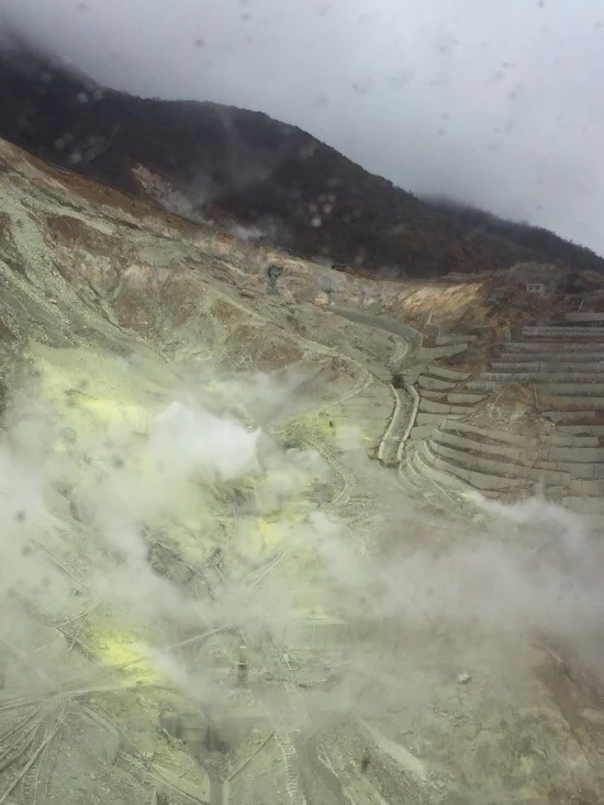 생각보다 유황냄새는 별로 심하지 않았으나 또 운행이 중단된다는 방송이 나와 로프웨이를 타러 가야 했다...