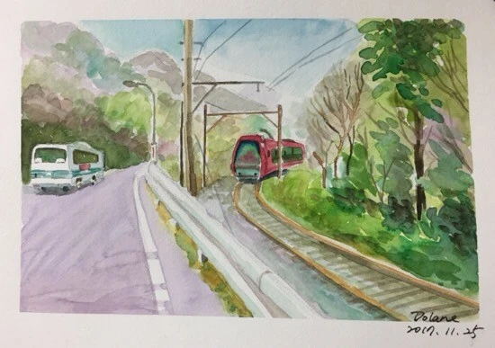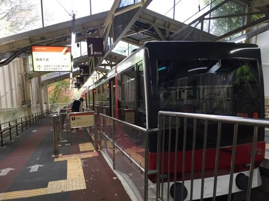 소운잔에서 등산 케이블카를 타고 고라(強羅) 역으로 내려갔는데, 독일 하이델베르크의 성까지 오르내리던 그런 케이블카였다!!