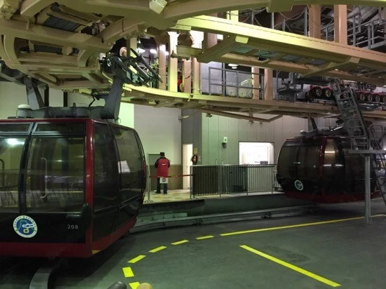 로프웨이는 저렇게 굵고 튼튼한 케이블로 움직인다. 수고가 많다!!