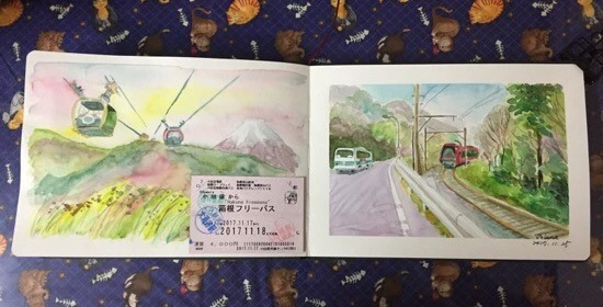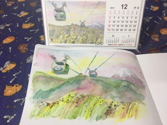 역에서 산 하코네 수채화 풍경화 캘린더를 보고 따라 그려봤다. 허접한 가운데 후지산이 참 마음에 들게 그려졌다~~