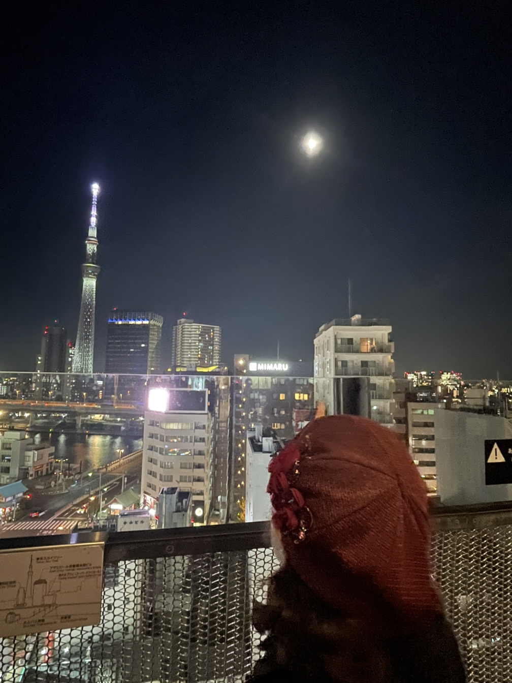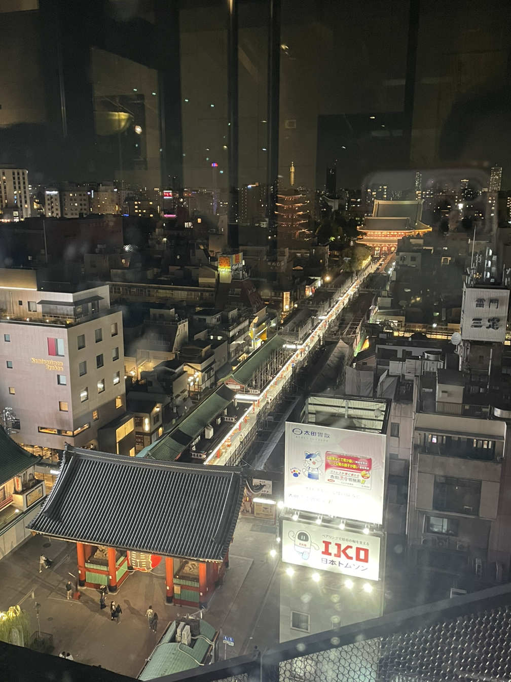 주위 야경을 보러 ‘카미나리몬(雷門)’ 맞은편에 있는 아사쿠사 문화관광 센터 8층 전망대에도 올라갔다. 저녁이라 엘리베이터가 텅텅 비어 있어 낯설었다. 낮이라면 수많은 관광객들과 줄을 한참 서 있어야 하는데 한적해서 무척 좋았던 거다.