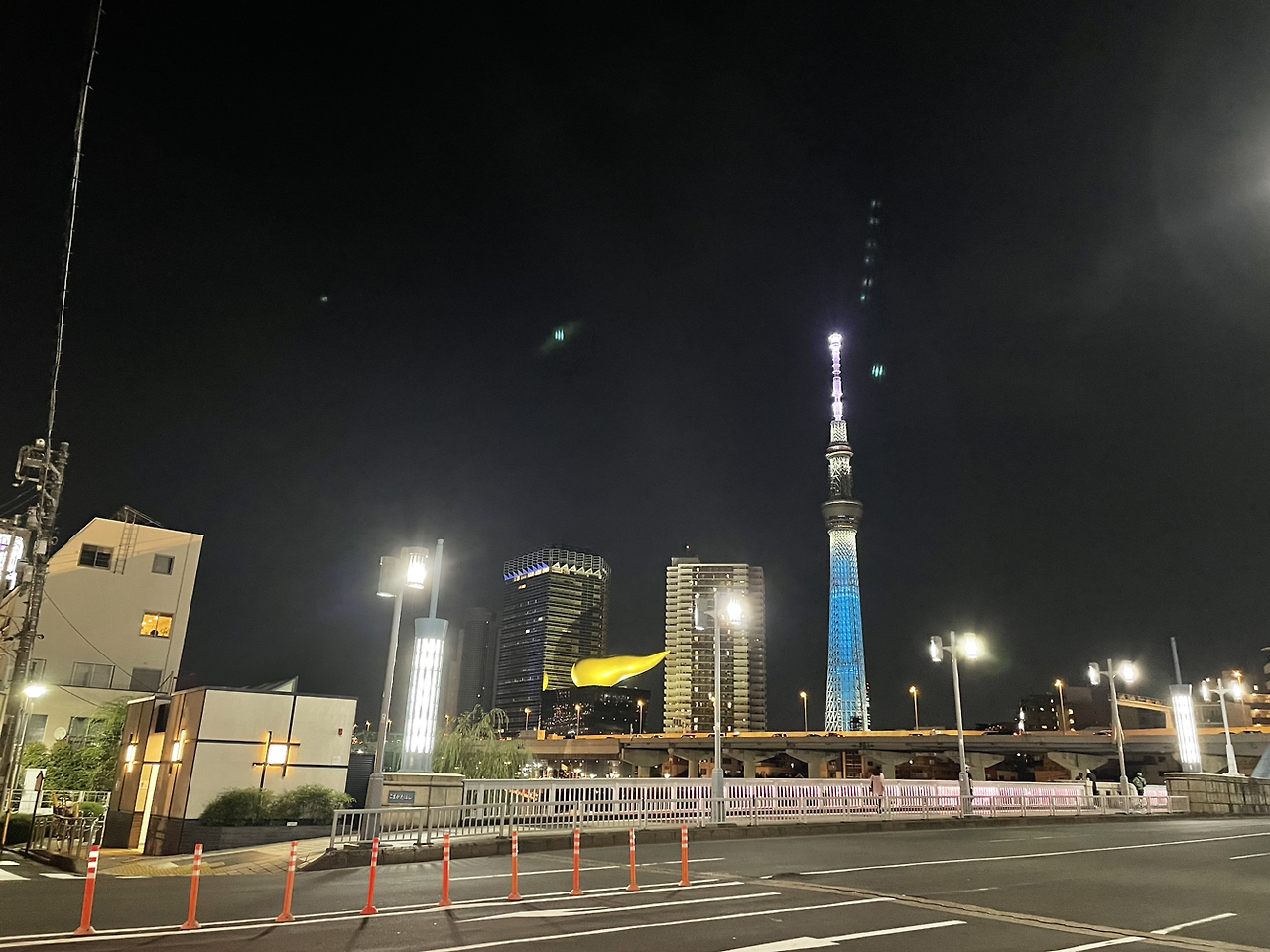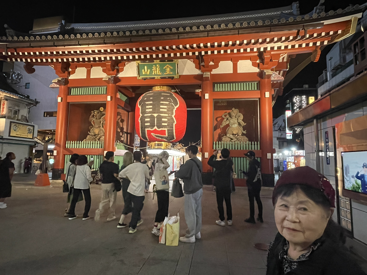호텔에서 휴식을 취한 뒤 저녁을 먹으러 밖으로 나가니 6시 이후라 이미 어둑해져 있었다. 마땅한 가게를 찾아 거리를 걷다 보니 스카이 트리와 황금색 아사히 맥주 본사 건물이 보이는 스미다 강가를 지나게 되었다. 비로소 길눈이 밝아져 센소지까지 가보기로 했다. 그나마 늦게까지 여는 식당이 있기 때문이다.