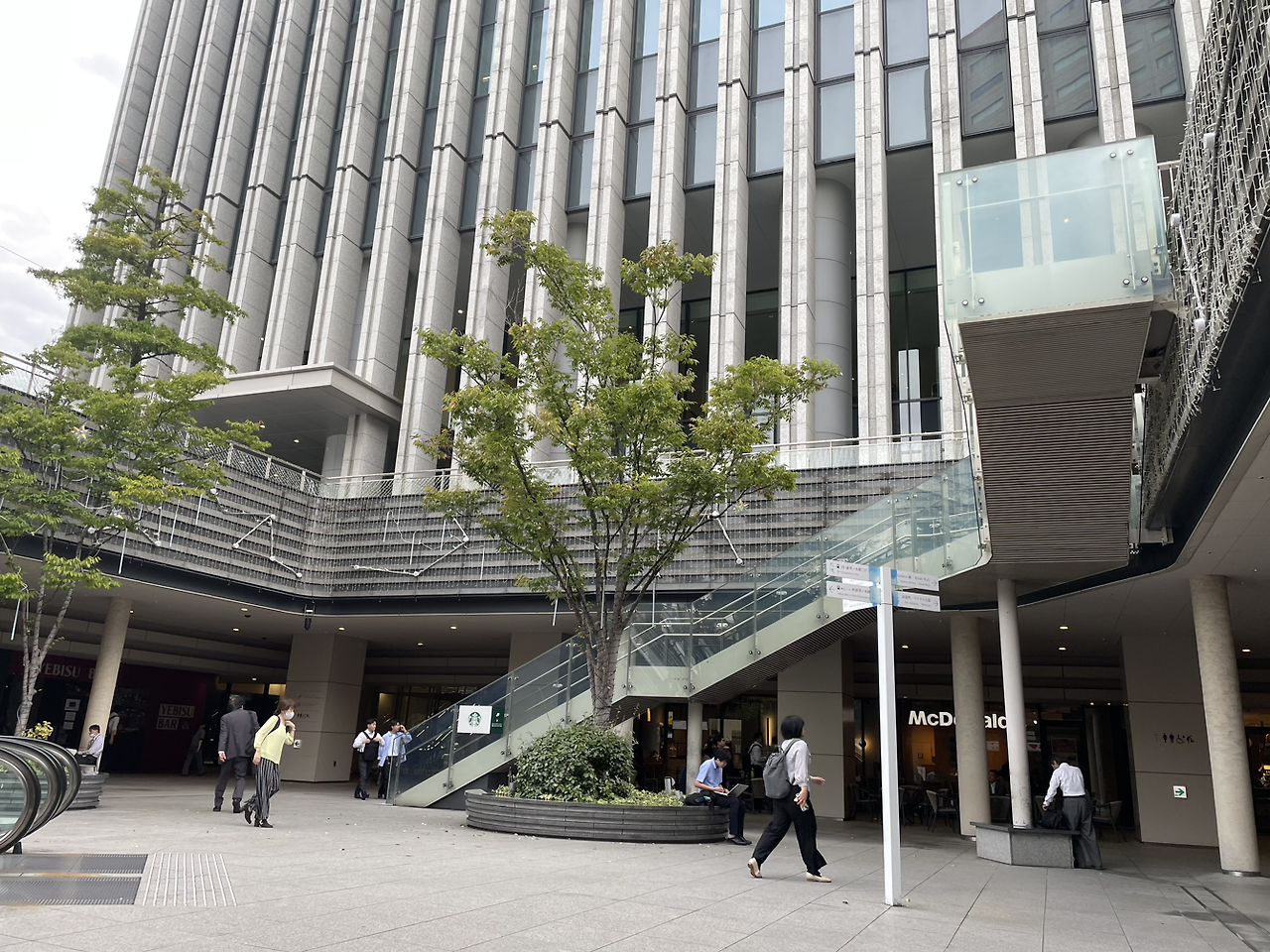 다음 행선지로 가는 전철을 타려고 신오차노미즈 역과 연결된 빌딩의 썬큰가든으로 내려갔는데 빈 테이블이 몇 개 있어 엄마랑 잠시 쉬어가기로 했다. 주변엔 간단한 먹을거리를 파는 가게들이 열려있고 테이블엔 서둘러 아침을 먹는 직장인들이 드문드문 앉아 있었다.