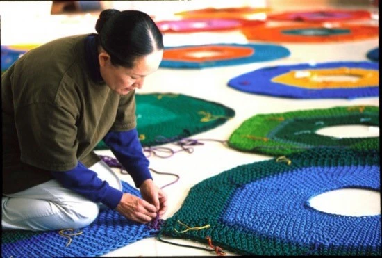 알록달록 다양한 색으로 엮은 그물 놀이터인데, 섬유 예술가 토시코 호리우치-맥아담이 한 코 한 코 손으로 짠 대작이다.