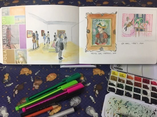 온통 투명한 유리로 지은 이 미술관은 하코네에서 가장 오래된 도자기 전문 미술관이다. 이 미술관엔 2대 창업자인 스즈키 츠네시(鈴木常司)가 40여 년간 수집한 각종 유명 작품들이 전시되어 있는데, 마침 <100점의 명화로 돌아보는 100년의 여행>이란 전시회를 열고 있었다. 19세기 중반에서 20세기 중반에 걸친 100년 간의 서양과 일본의 근대 회화를 연대순으로 전시해 놓은 거다.