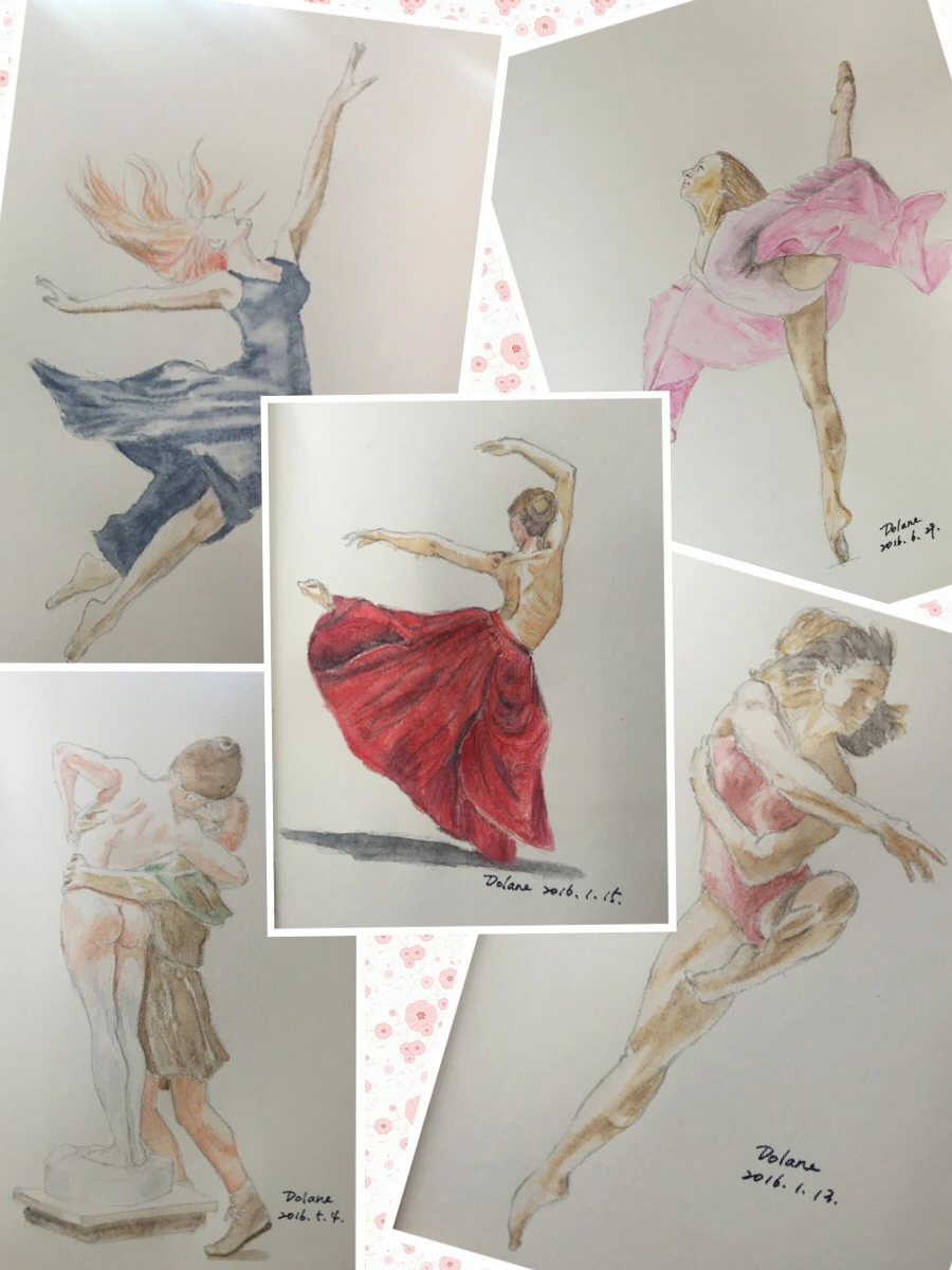 도구를 수채물감으로 바꾸고 정물화나 인물 초상화, 풍경화도 그리고 있지만, 무용수를 그릴 때 제일 신난다. 아예 댄서 시리즈로 컬러링 북도 제작했는데 고맙게도 온라인 독립출판물로 출간되었다.