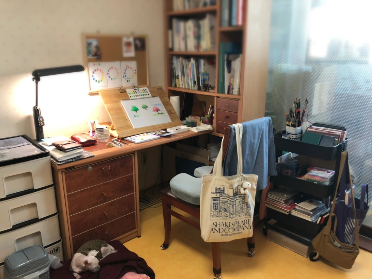 지난주엔 아들방을 다른 방으로 옮기며 아들 책상을 내가 쓰기로 했다. 늘 부엌 식탁이 내 작업 공간이었는데 내게도 소위 '아틀리에'가 생긴 셈이다. 신나게 정리하느라 몸이 아픈 줄 몰랐을 정도였다.