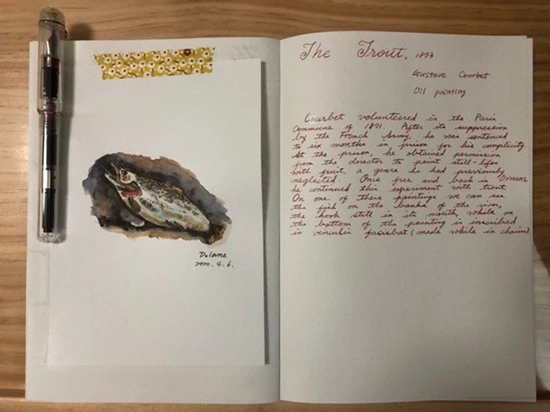 자리 잡은 후 그린 게 쿠르베의 '송어'다. 문화센터에 다시 출강하고 있으니 이 프로젝트를 완성하려면 아마 1년 이상은 걸리지 않을까 싶다. 어디에 내놓을 것도 아닌 내 개인적인 일이니 좀 더 즐겁게 천천히 해가련다. 희망하건대, 다 완성된 이 노트를 들고 나는 오르세에 다시 갈 거다. 그땐 그림들이 또 다르게 다가올 게 틀림없다...