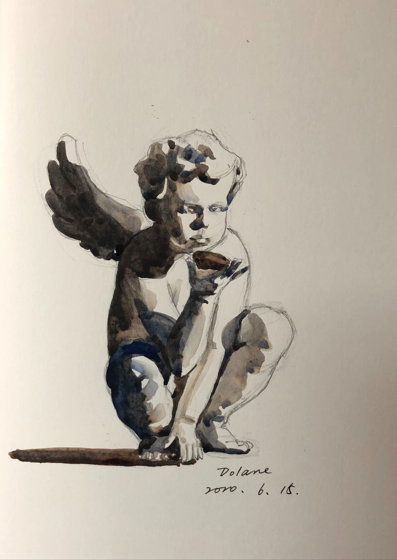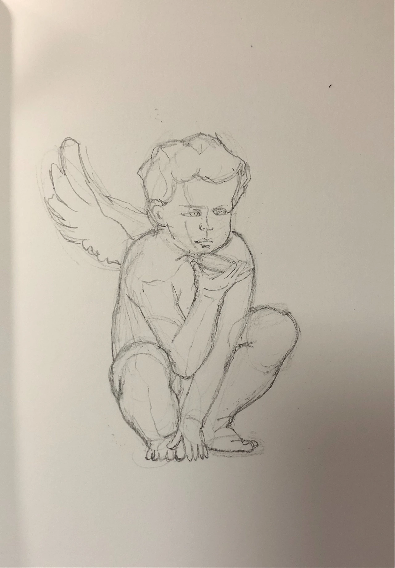 핀터레스트에서 찾은 귀여운 천사 조각상 사진을 보며 밑그림을 그리기 시작했다. 종이는 텍스처 없이 맨질맨질하지만, 사각거리는 연필 소리가 유난히 크게 들려 참 좋았다.