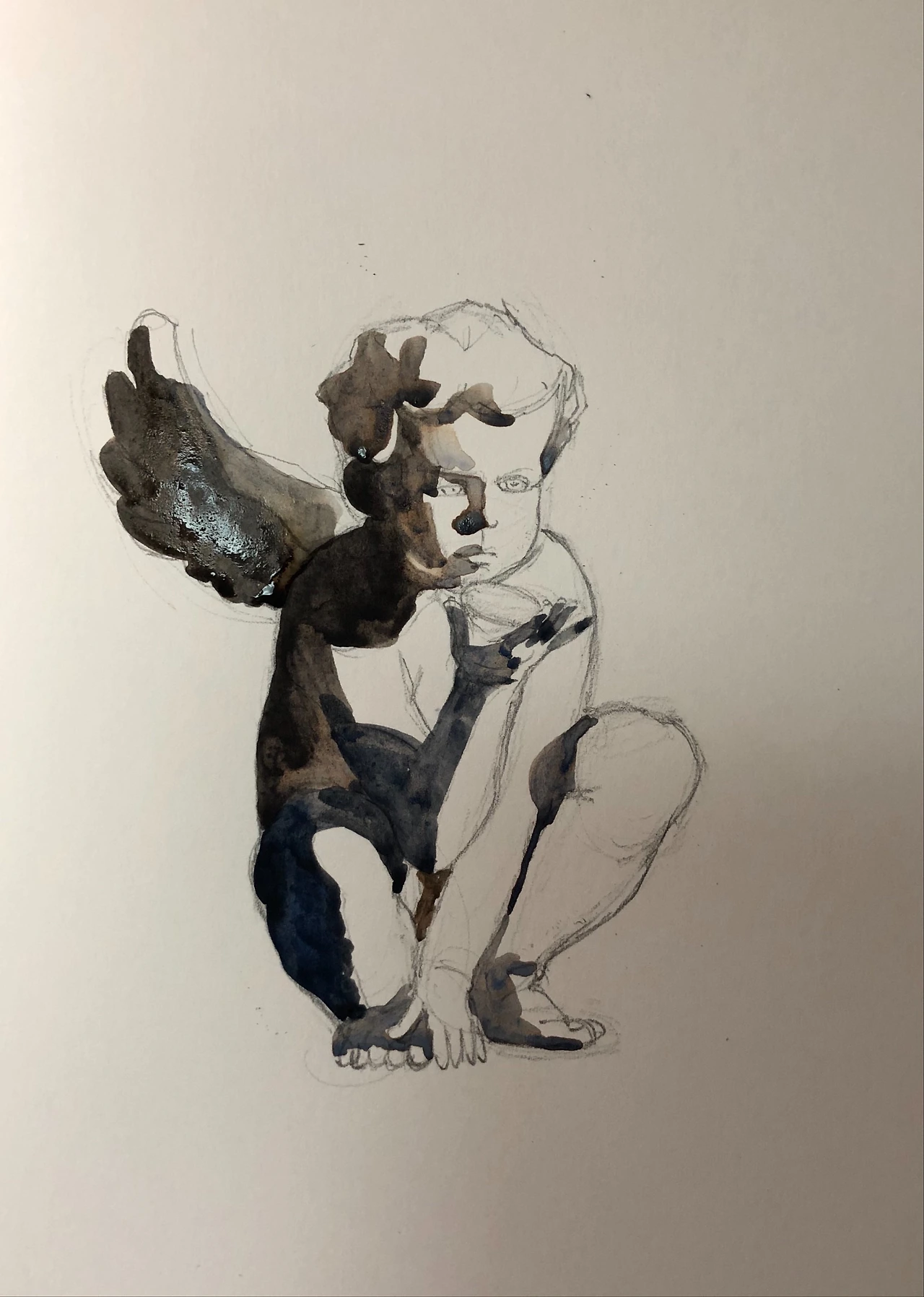 어린아이이기 때문에 근육이 울퉁불퉁하지 않게 주의하며 스케치를 마친 후, 명암 구분을 했다.