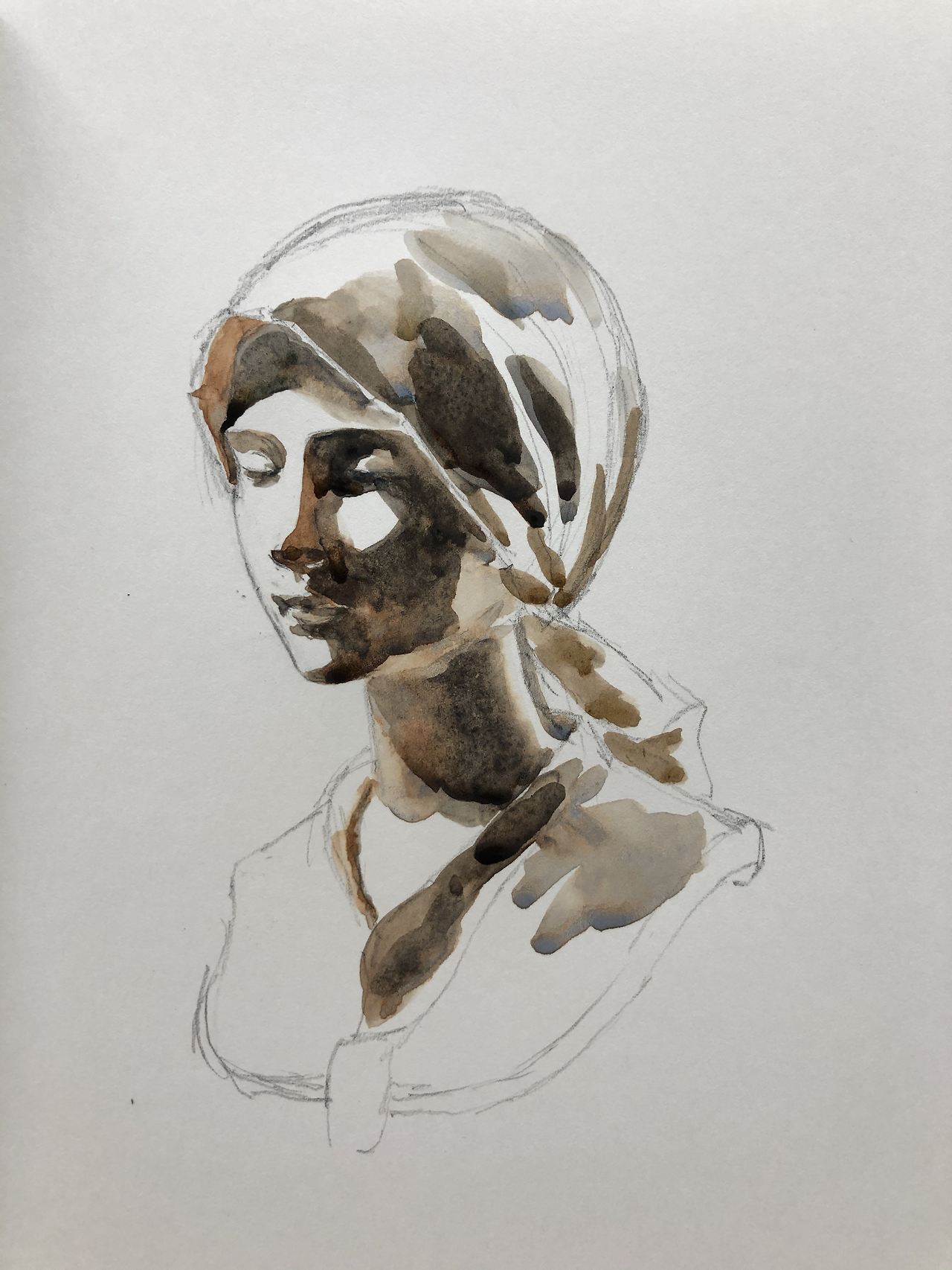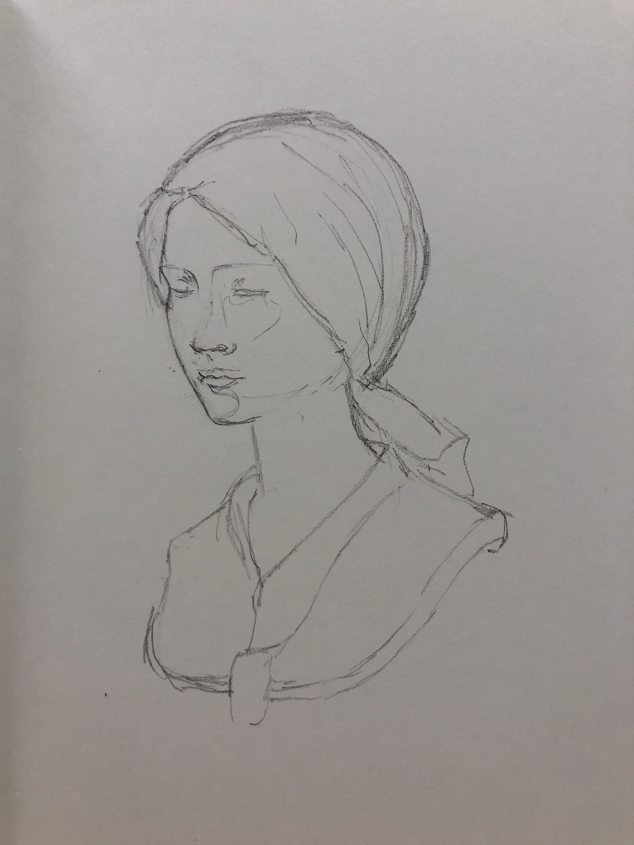 핀터레스트에서 장르별로 분류해놓은 카테고리 중 두건을 쓴 소녀상을 그려보기로 했다.