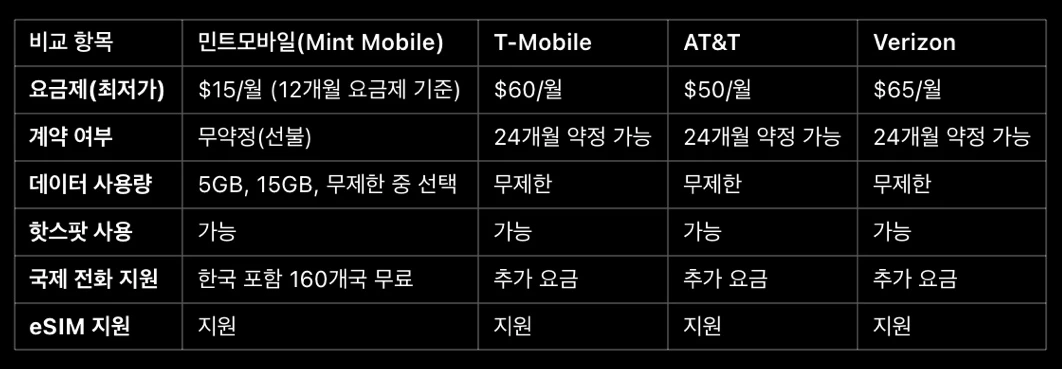 - 가성비 최고 미국 주요 통신사보다 월등히 저렴