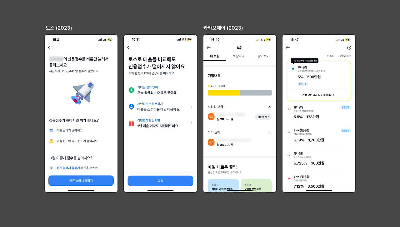 2023년에는 토스와 카카오페이 둘 다 카드 컨퍼넌트를 지양하려고 하는 점이 독보였다.