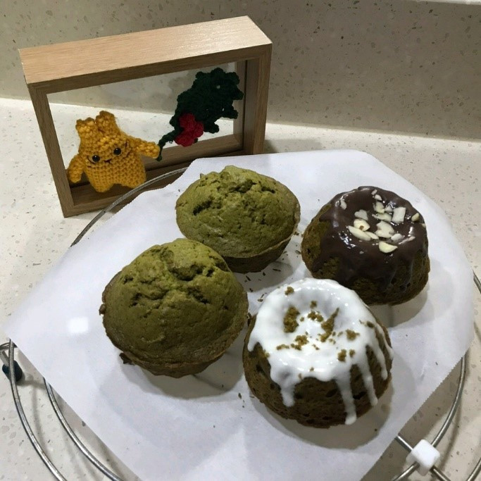구겔호프는 우아한 완관모양이 인상적인 폴란드와 오스트리아의 전통 빵이다. 가운데가 뚫려있어 열기가 빠르게 도달하여 전제적으로 폭신폭신하게 구워진다고 한다. 으니는 가운데를 초콜릿으로 막아버렸다. 머핀은 덤. 유니가 녹차를 좋아하다 보니 재료를 왕창 구입해서 당분간 녹차 활용 베이킹이 이어질 것 같다.