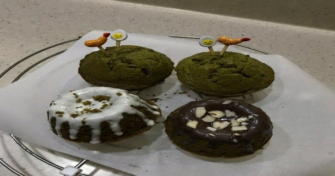 세번째 만든 녹차스콘(왼쪽)과 네번쨰 만든 녹차구겔호프(오른쪽)