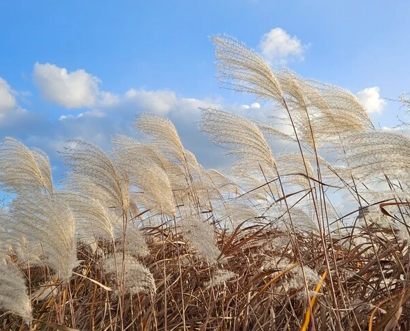 허리를 꼭 졸라맨 롱스커트. 때로는 표범무늬 살색 블라우스. 갈대를 닮았다.