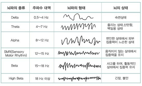 뇌파는 활동에 따라 다르게 나옵니다. 세타파가 많이 나오는 분들은 멍때리기 선수!^^