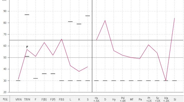 * MMPI(Minnesota Multiphasic Personality Inventory)는 현재 가장 널리 쓰이는 심리검사 중 하나로 성인의 성격과 정신병리의 표준화된 심리측정 도구이다.