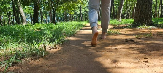 "맞아, 맨발로 걷고 있지. 아주 좋아. 그래서 생각났어"