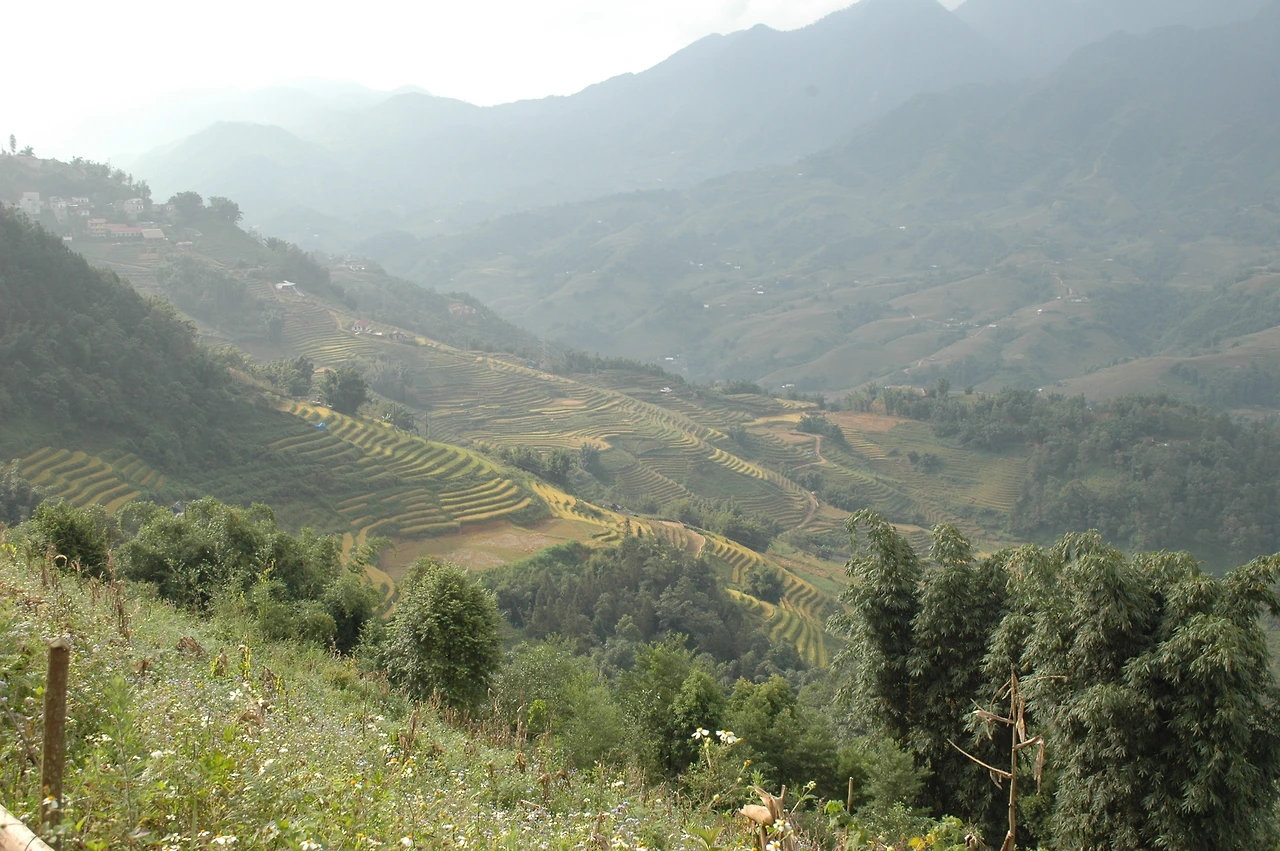 트레킹을 하다보면 전망이 좋은 곳에는 휴게시설 같은 것이 준비되어 있으며(아래 사진 참조), 이곳에는 몽족 아이들이 물건을 파는 것을 볼 수 있으며, 이들에게 라오차이 가는 길을 물으면 친절하게 가르쳐 준다. 이렇게 좁은 논두렁 사이로 난 길을 따라 한참을 가면 아주 전망이 좋은 휴게시설을 지나 시멘트로 된 큰 길을 만나며, 내려가면 안되고 다시 위로 올라가야 한다. 좀 올라가면 삼거리 길을 만나고 왼쪽은 사파로 되돌아 가는 길이고 오른쪽으로 가면 라오차이로 내려가는 길이다. .-이곳에서 왼쪽으로 한참을 올라가면 다시 사파로 가는 큰길이 나온다. 위의 트레킹 기점이라고 했던 PAO'S SAPA Leisure 호텔의 삼거리 길이 나온다.-