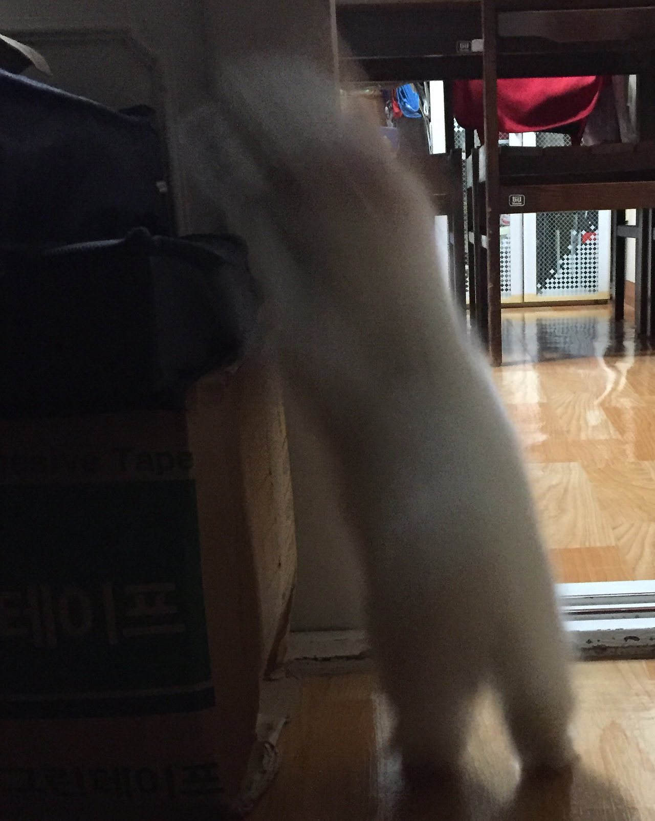 문제는 고양이들이 좀 많이... 빠르다. 소리 하나 내지 않는 것 치고 어찌나 동에 번쩍 서에 번쩍 돌아다니는지 셔터 소리가 열 번을 넘게 들려도 잘 찍은 사진 한 장 찍기가 참 힘들다. 솜솜이를 데려온 이후로 종종 주변 사람들에게 "지금 솜솜이 뭐해? 사진 보내줘!" 라는 말을 듣는데 가끔은 답장으로 아래와 같은 사진을 보내기도 한다.
