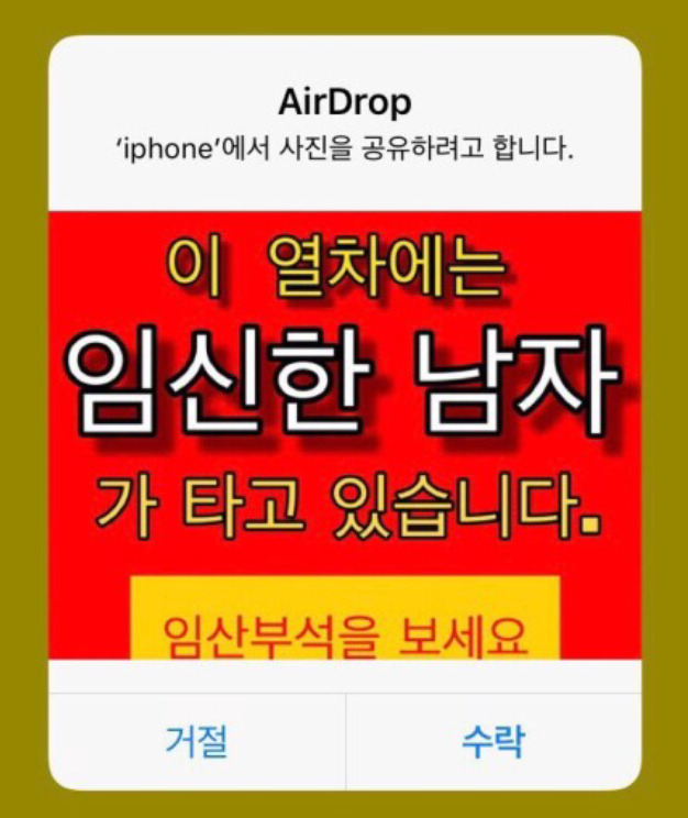 최근에는 아이폰에 있는 Air Drop(주변에 있는 다른 아이폰 이용자들에게 이미지를 전송하는 기능)을 통해 임산부석에 앉은 비임산부들을 저격하는 이미지를 보내기도 한다. 해당 자리를 비워놓아야 한다고 생각하는 사람들이 임산부석에 앉은 비임산부 승객들이 다른 사람의 눈치를 보게 만드는 상황을 유도하는 것이다. 그 자리에서 당장 비임산부 승객을 일으킬 수 있을 수는 없어도, 차후에 그 자리에 앉기 전 망설이는 사람들이 늘어날 것을 생각하면 기발한 발상이다.