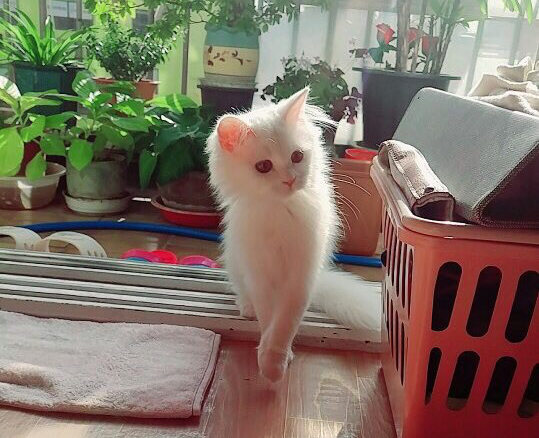 그러던 와중에 3살배기 터키시 앙고라를 입양할 기회가 닿았다. 솜솜이는 먼치킨이었지만 유난히 터앙이냐는 소리를 많이 들었었다. 고양이 사진을 미리 받아보니 새하얀 털이며 몇몇 자세들이 솜솜이와 정말 비슷했다. 솜솜이가 아프지 않고 잘 컸다면 이렇게 생겼겠지, 싶은 생각을 들게 하는 아이였다. 복막염은 1-2년 이하의 아이들이 많이 걸리니까 그런 점에서도 안심할 수 있을 것 같았다. 입양 절차 역시 순조로웠고, 틀림없이 묘연이겠다는 확신이 있었다.