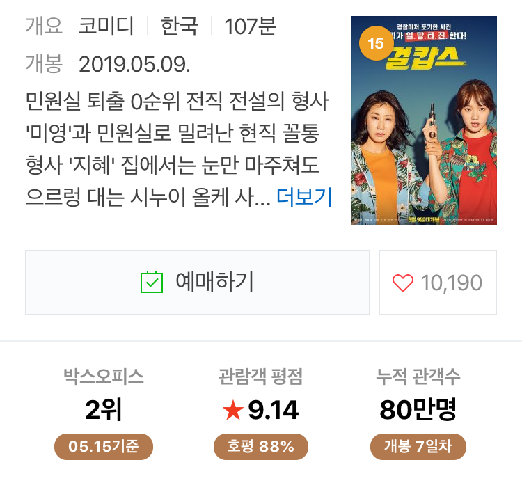 젠더 갈등에 지쳐있는 사람도, 페미니즘에 별 관심이 없는 사람도, 나이대가 있는 사람도 부담 없이 영화를 볼 수 있다. 페미니즘의 관점에서 이 영화가 완벽하다고 말할 수 없기에 우리는 걸캅스를 통해 여성 영화라고 해서 완벽해야 하는 것이 아니라는 메시지를 얻는다.