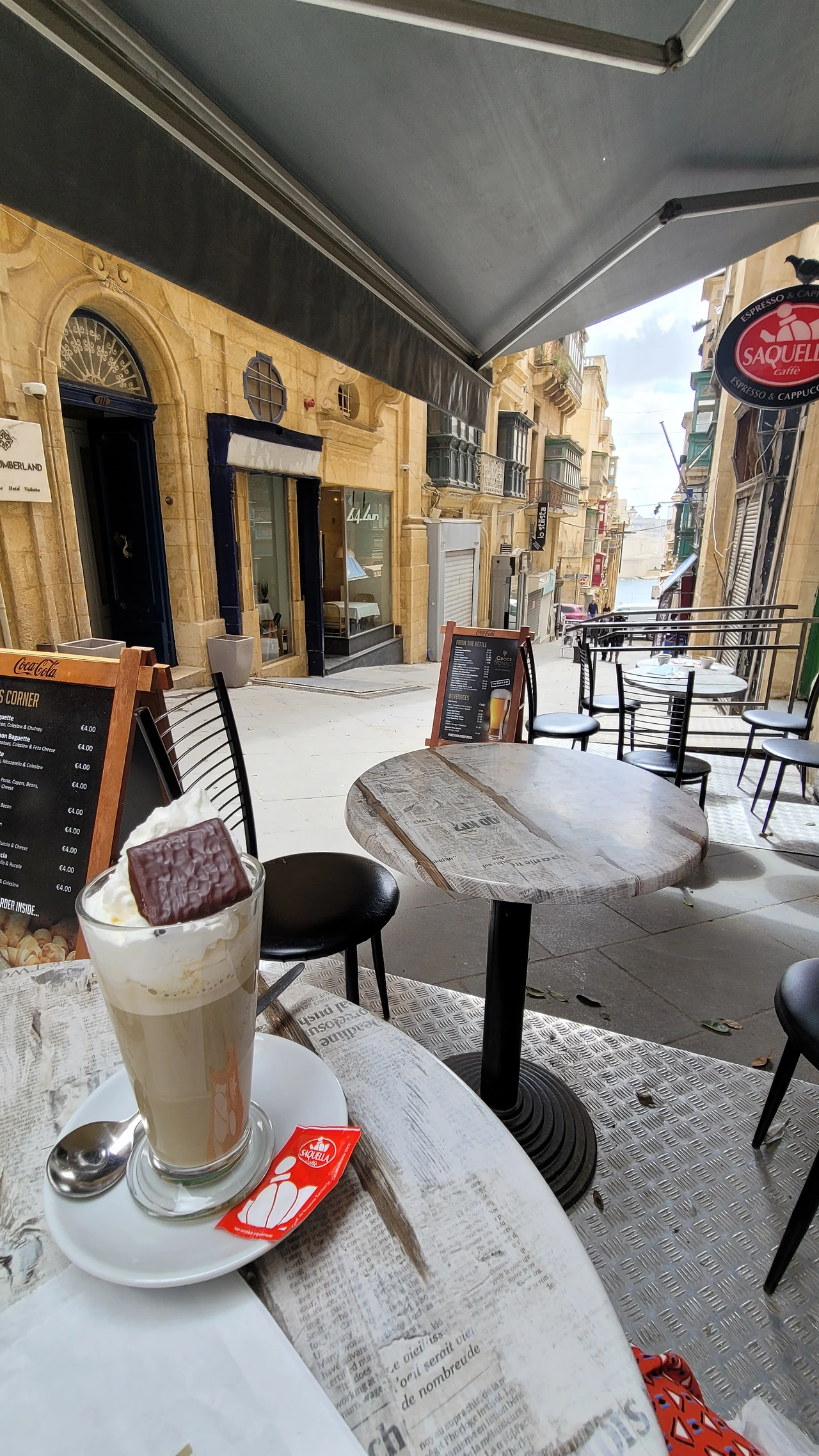 물론, 여긴 길거리 음식이 워낙-내 기준엔- 훌륭해서 이런 파인 다이닝 만족도가 나에겐 떨어졌지만 말이다. 5유로 미만으로 맛있게 먹을 수 있는 게 발레타를 포함한 몰타 전역에 정말 많기 때문에. 발레타에서는 사흘 내내 방문한 카페가 있었는데 바다가 보이는 내리막에 있는 이 카페는 커피가 맛있고 저렴한 데다 같이 먹을 수 있는 2~3유로대 식사용 파이 종류가 정말 많아서 이거 골라서 먹는 게 재미였다. 단점은 사람이 늘 많다는 것.