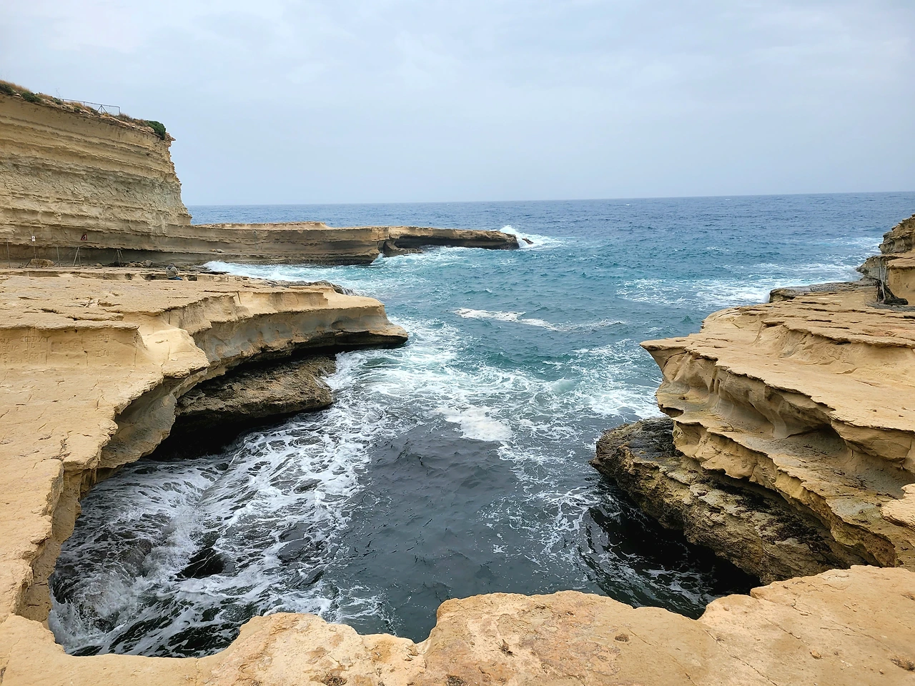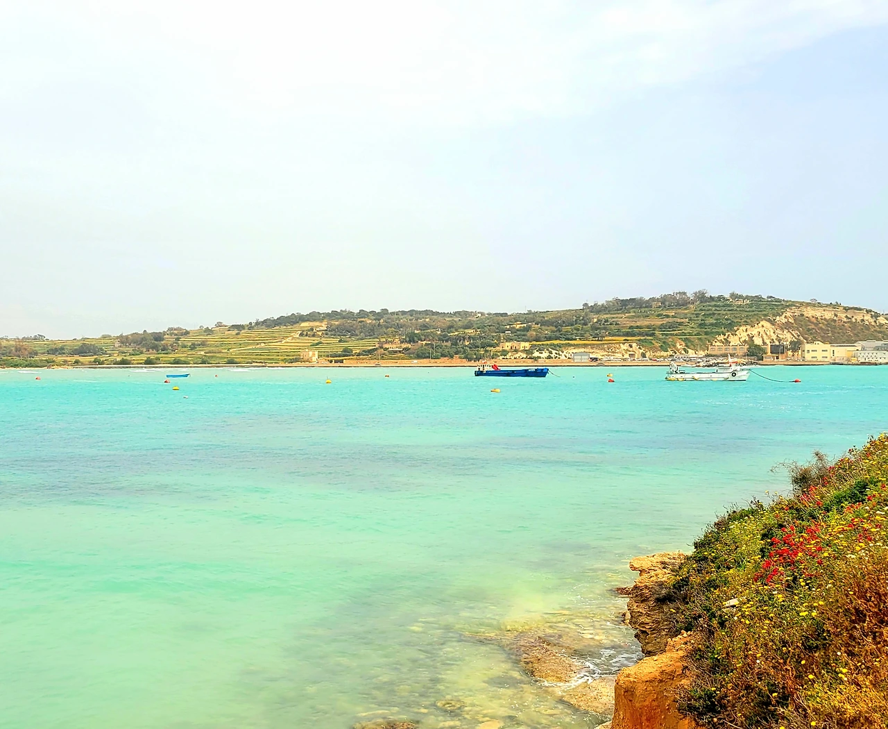 그리고 이 항구 좌우로도 좋은 바닷가 산책 코스가 있다는 걸 가서 알게 됐다(진짜 사전 계획이란 게 없는 여행 ㅎㅎ) 걸어서 20분 정도 거리에 세인트피터스 풀이 있는데 몰타 남쪽 해안에서 많이 볼 수 있는 그런 절벽이다. 반대쪽으로 20분 정도 가도 다른 느낌으로 해변을 따라 걸을 수 있는 길이 있다. 여기는 에메랄드빛 바다가 계속 펼쳐지고 사람도 많지 않았다. 게다가 이날 날씨가 정말 화창했기 때문에, 모든 게 완벽했다.