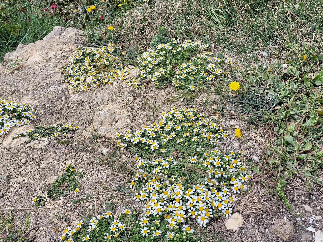 물론 이보다 더 좋을 수 없게(바람은 꽤 불었지만) 화창했던 날씨가 하이킹에 꽤나 기여했다. 지중해 물빛이 바라보는 각도에 따라 달라진다. 식생도 꽤나 달라서-올리브나무 등등- 이 점도 한국사람 입장에선 이국적으로 보인다. 차로만 마시던 카모마일 실물도 여기서 처음 봤다. 그리고 하이킹 코스 절벽 바위가 굉장히 특이한데 조개껍질 같은 화석을 그대로 볼 수 있다. 옛날옛날 바다 속에 있었다는 흔적이다. 카멜레온도 많다고, 가이드가 꼭 보여주고 싶어했는데 이날은 못 찾았다.