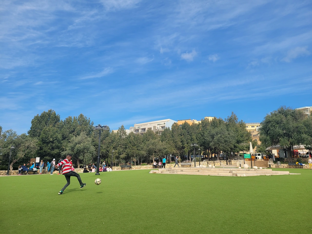 숙소에서 버스를 타고 부지바를 가던 중에 버스를 실수로 한 정거장 지나서 내리는 바람에 어떤 공원을 지나쳐 오게 됐는데, 이 공원 풍경에 힐링되기도 했다. 날씨가 아주 화창한 토요일 오전이었고, 가족들이랑 함께 놀러 나온 아이들이 공놀이하고 뛰어놀고 있는데 그냥 그 모습 자체가 너무 평화로워서 공원에 가만히 앉아 있었고, 그냥 이렇게 있는 순간이 좋았다.