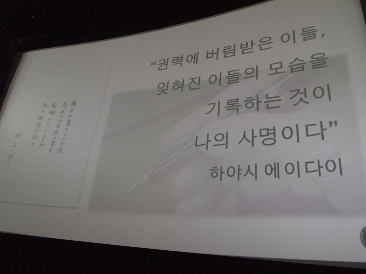 두어 달 지난 8월 26일. EBS 국제다큐영화제에 초청된 하야시 선생의 다큐를 이대 아트하우스 모모에서 봤습니다. 영화를 보는 내내 그분을 만난 것처럼 반가웠습니다. 주최 측에서 "하야시 선생의 건강이 나아졌다"고 하자 반가움은 더해졌습니다. 언젠가 이 분을 만날 수 있을 것 같았습니다.