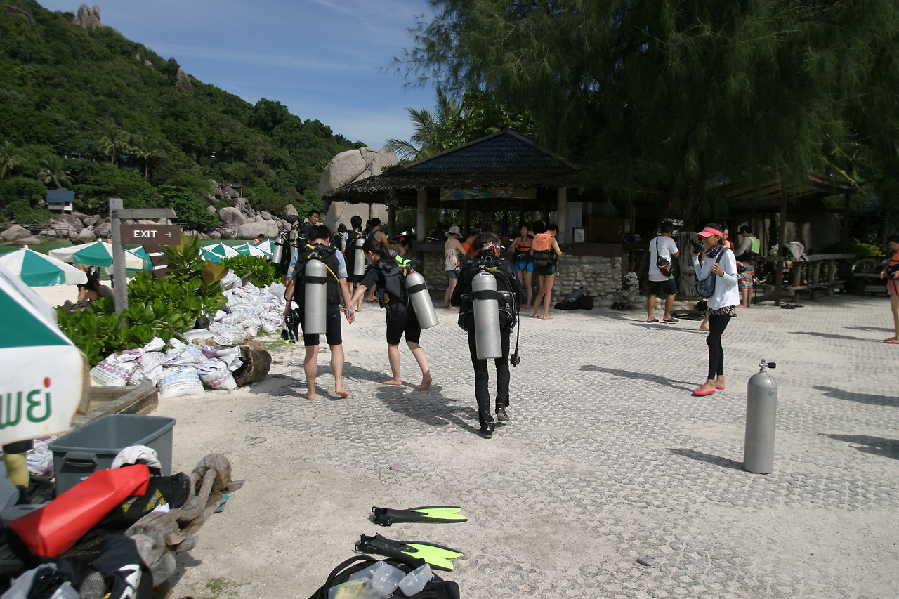 하지만 그 평온은 오래 머물지 않았다. 갑작스레 들이닥친 커다란 관광선, 그리고 그 배에서 쏟아지듯 내려오는 수십 쌍의 한국인 신혼부부들. 코사무이에서 허니문을 보내다 낭유안으로 체험 다이빙을 하러 온 커플들이었다.