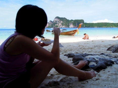 택시 기사는 배표를 사오겠다며 어디론가 뛰어갔다. 잠시 뒤, 그는 젖은 티켓을 들고 돌아와 400밧을 요구했다. 나는 어떤 목적지를 확인하고, 고개를 끄덕였다. 빨리 다음으로 넘어가고 싶었다.