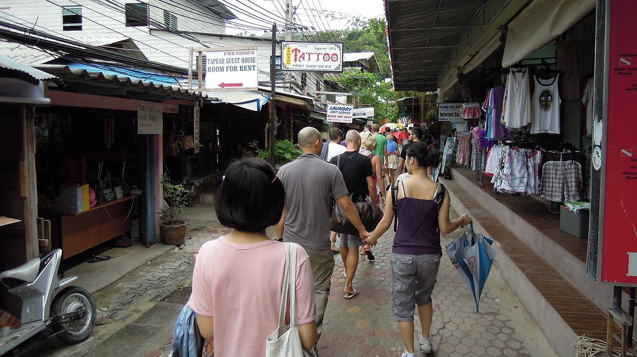 수많은 배낭여행자들 사이를 헤치며 우리는 피피섬에 닿았다. 나도 처음 마주하는 섬이었다.