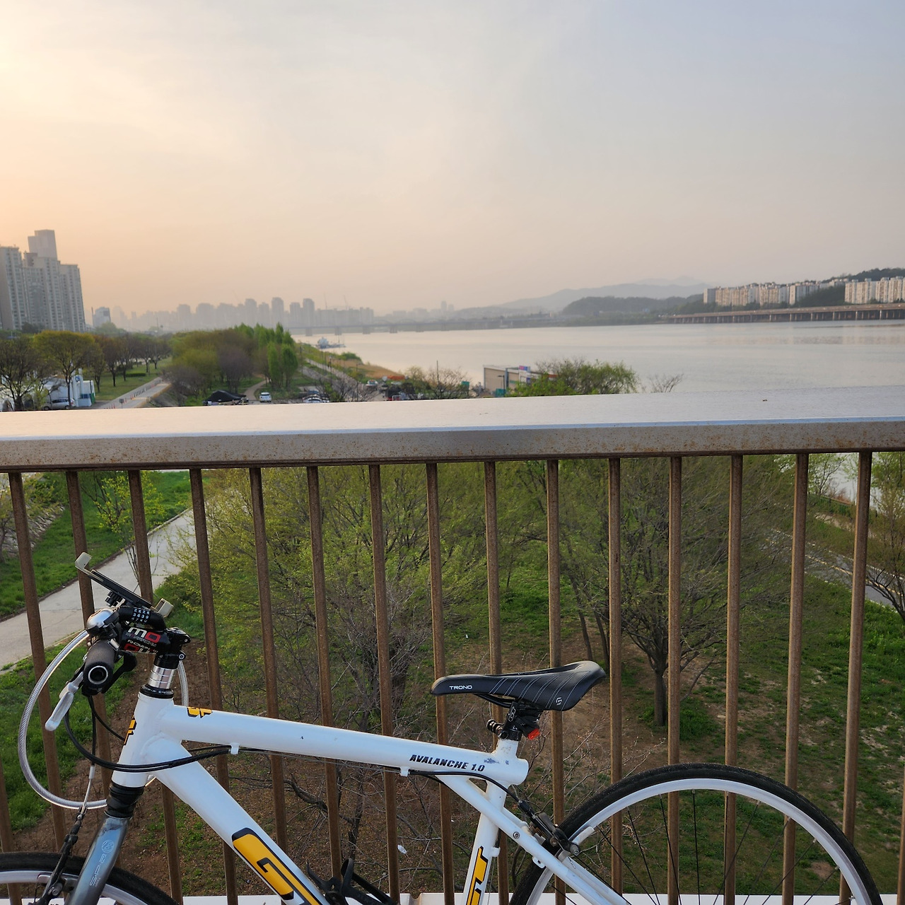오늘 출근은 서울시 공용자전거 '따릉이'가 아닌, 개인 자전거로 출근을 했다. 따릉이로 이미 여러 번 지나다닌 한강대교 위지만 느낌이 조금은 달랐다. 목표를 하나 달성했다는 생각에 뿌듯했고, 기뻤다. 평소 지나다니면서 관심도 없던 한강을 배경으로 자전거와 함께 사진을 찍었다.(자전거 잘.알.못인 나는 이 자전거가 괜찮은지 모른다. 다만 외관상으로 창피하지 않아 보였다. 나는 그 정도면 충분하다.)